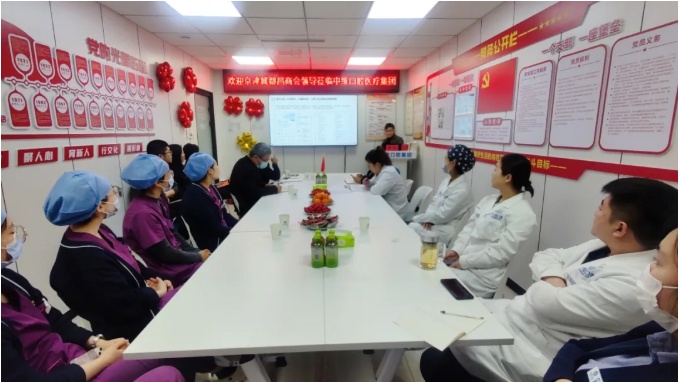 3月7日,中维口腔医疗集团董事长于英月、党支部书记刘俊敏及集团高层管理人员,热情迎接了京津冀都昌商会执行会长吴德志,秘书长刘盛松,副秘书长罗文一行莅临中维口腔医疗集团交流指导。在会议中,双方就党建工作进行了深入探讨与交流。