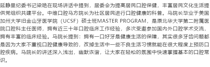 中维口腔门诊党支部开展全民口腔健康科普活动
