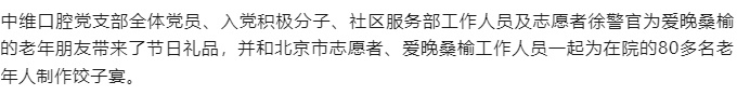 中维口腔党支部“共建邻里情系列活动——爱晚桑榆养老院亲情慰问”活动圆满举办