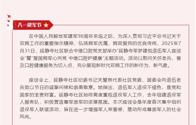 八一慰问显真情 双拥共建践初心——中维口腔党支部联合延静寺社区开展“八一”建军节系列双拥活动